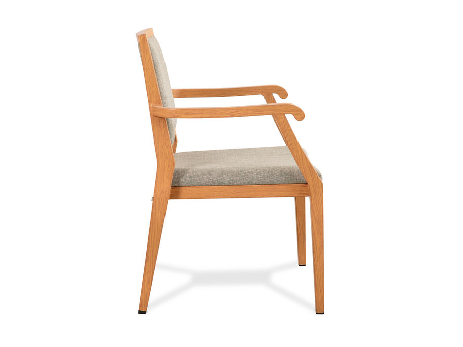 Traditional aluminium designed dining chair with easy grip handles at the end of the armrests for ease of getting in and out. Light weight, stackable and extremely sturdy with gap at the seat for easy cleaning.